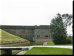 The fort was surrounded by a moat (which is now the home for two alligators). The moat was 7 feet deep and 32 to 48 feet wide. It's only entrance was a draw bridge, the interior of which was defended by a second locked door and rifle slits protected the passageway in between.