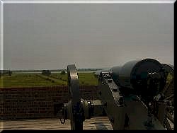 What the Southern Soldiers didn't know was that Capt. Quincy A. Gillmore was about to unveil a new weapon which would change the face of warfare - the rifled cannon. Unlike conventional smooth-bored cannons, these guns contained spiraled (rifled) grooves which gave the projectile greater range, accuracy and penetration. Their effective range was 8453 yards, far exceeding the existing artillery. The 10 new experimental cannons, erected in secret by the North, were able to breach the walls of the fort within the first 30 hours of the bombardment. Col. Olmstead realized that he would either have to surrender, or the next few volleys would have ignited the exposed 40,000 pounds of gunpowder. He chose to surrender. He and his men were marched off to prison, although he was later released and served out the remainder of the war.